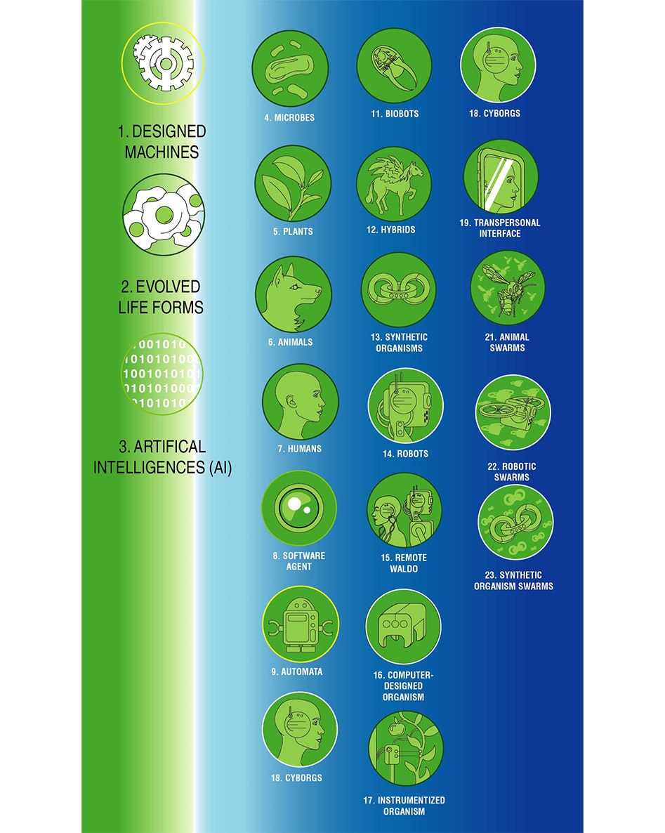Our goal must be to expand our narrow ability to recognize minds and learn to flourish among many different kinds of intelligence, from humans to AI to weirder and more wonderful beings that will arrive in the future. You might call this concept synthbiosis: the quest to develop mutually beneficial relationships between radically different beings that are evolving together, at different rates and in different directions, in the web of life on Earth and beyond.
