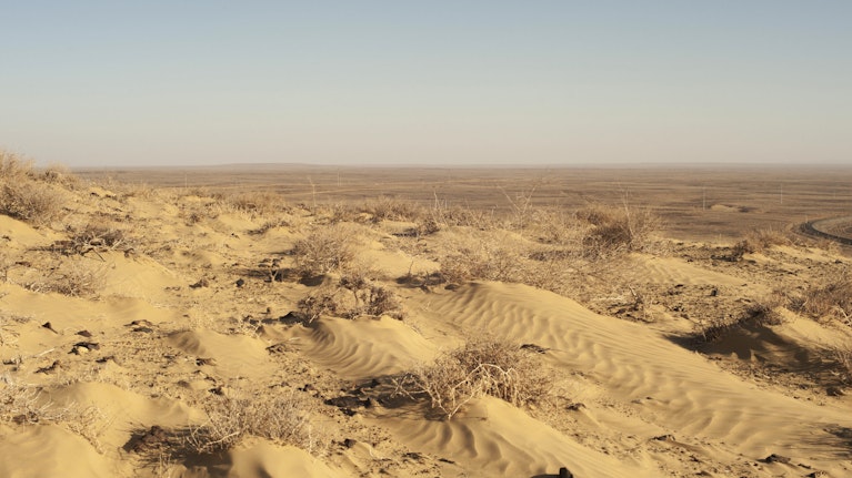A hardy, woody shrub called saxaul is another form of new life. Saxaul thrives in arid, saline environments, and it can grow to the height of a small tree. Its roots fix sandy soil in place; a fully grown plant can stabilize four metric tons of it or more. The government of Uzbekistan is planting it everywhere it can, and the bleached white of the desert is turning green. The endangered saiga have adapted too, using the seabed as a corridor to migrate from Kazakhstan. A herd of around 200 grazes on Vozrozhdeniya, which translates as “rebirth” or “resurrection”; despite the toxins in its soil, the former bioweapons base is now a protected nature reserve.