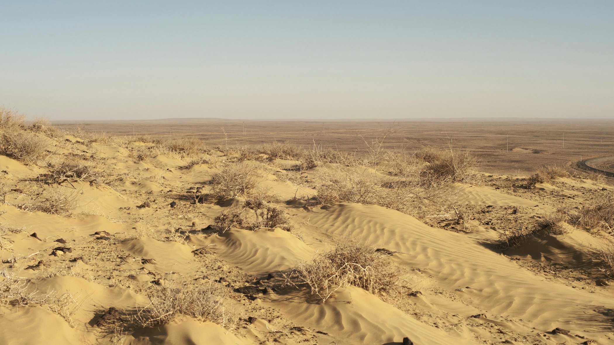 My journey to the sacrifice zone followed the same itinerary. The other passenger on the tour was a software designer from London named Steve. To a soundtrack of blaring Uzbek pop, in a battered SUV driven by a gold-toothed man named Kolya, we ascended to the Ustyurt Plateau, a vast, elevated shelf of desert once roamed by Kazakh nomads, the eastern edge of which used to be the Aral’s sea cliffs. The scale of what we saw from there was impossible to comprehend: a living ecosystem now dead, a sea replaced by desert.