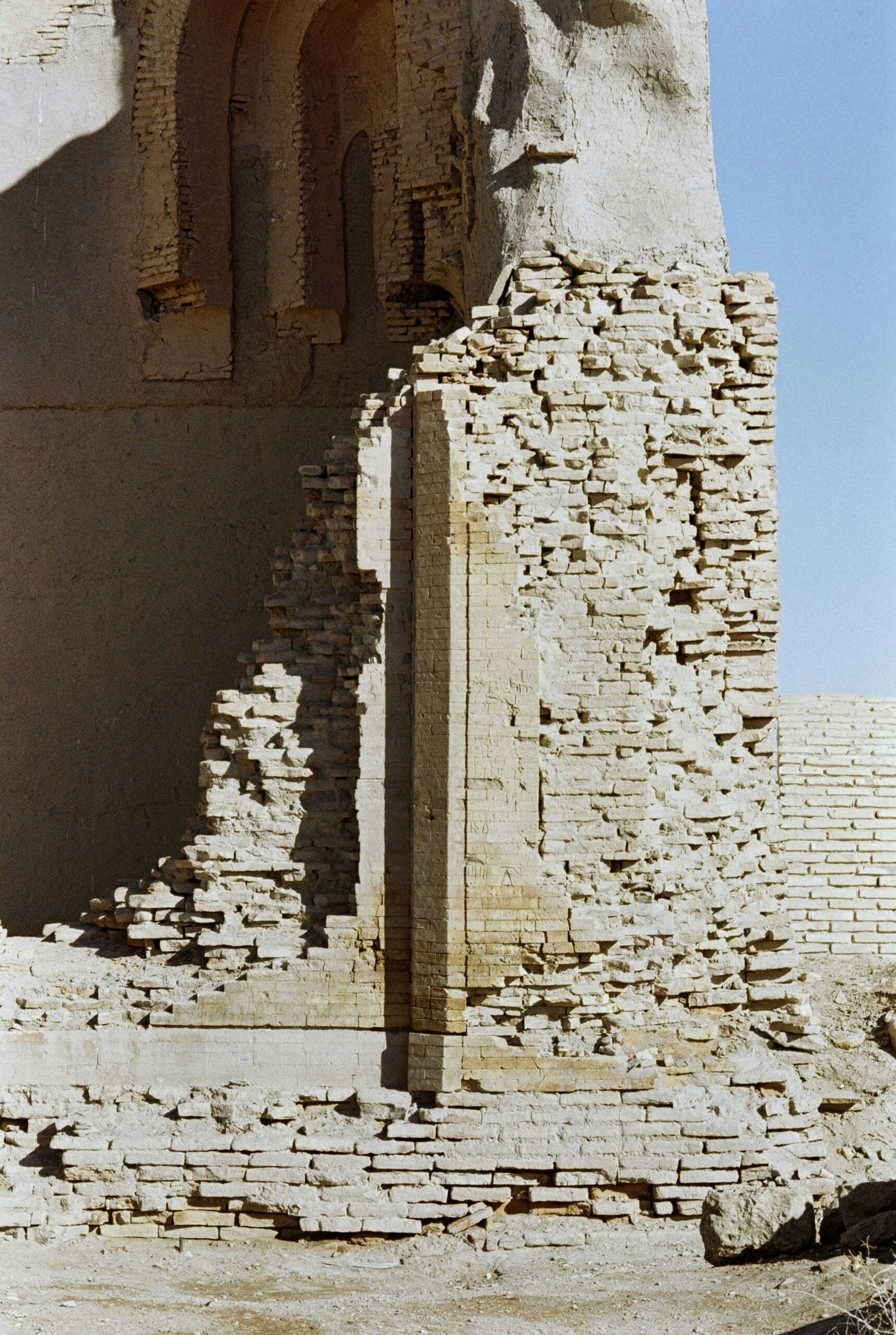 Much of Uzbekistan, I saw as I traveled on, is littered with the remains of vanished civilizations. From Samarkand, my route led west for 500 miles by train, from the country’s more fertile east to the vast, arid region of Karakalpakstan. The track parallelled the Amu Darya, the river that divides two forbidding deserts: the Kyzylkum (“Red Sand”) to the north and Turkmenistan’s Karakum (“Black Sand”) to the south. There was nothing red or black in the vastness I could see, nothing but low, wind-sculpted dunes stretching on and on. But then in the distance a grey silhouette appeared, a kind of flat-topped mountain with symmetrically sloping sides. Even from afar it was clearly not natural. After watching it for a while — the only thing to focus on in the horizontal endlessness — I recognized it as Chilpik Kala.